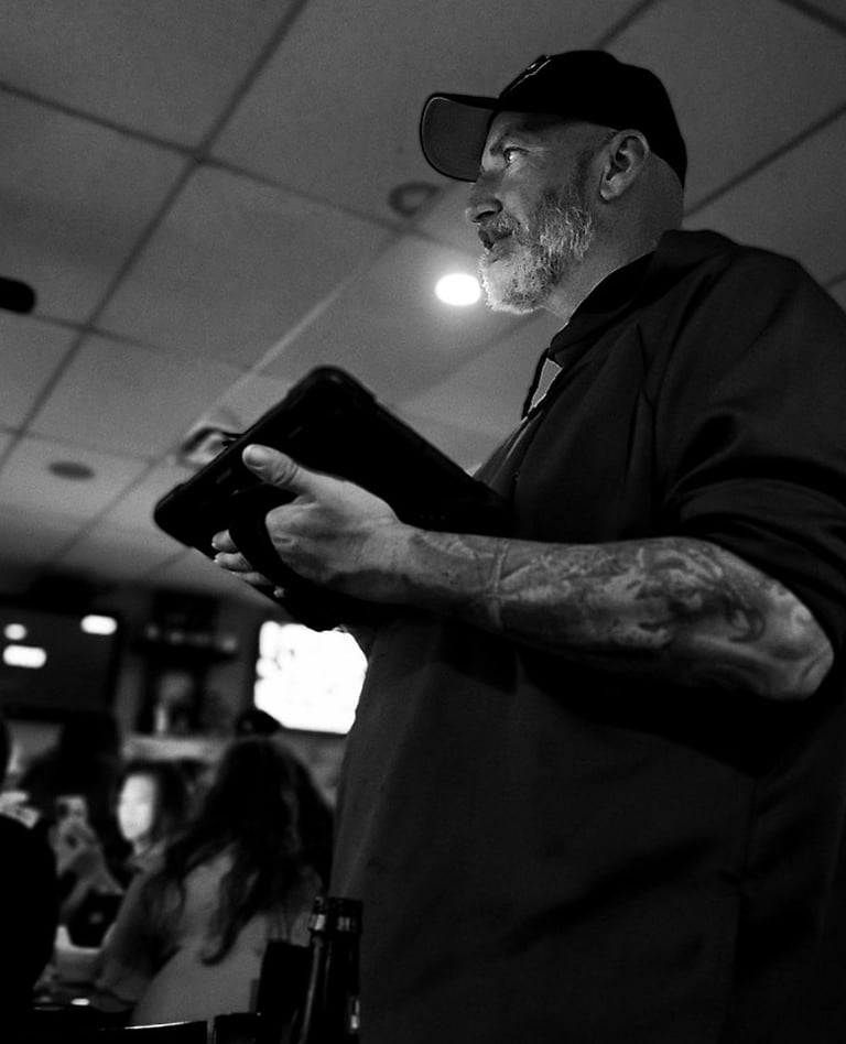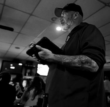 Jim's story is a great one, so we're proud to share it with you. Jim began as simply a fan of the band, coming to virtually all of our shows. After we noticed how dedicated he was, he quickly became "one of the guys", so we asked him if he would be interested in running sound for us. He eagerly accepted and the rest is history. He learned the craft of live sound quite quickly, as one of the prerequisites for a good sound engineer is that you need to love music. His contribution to the "total package" of Turning Point cannot be overstated, and we quite honestly could not do it without him.